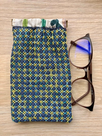 刺し子のバネポーチ(眼鏡ケース)